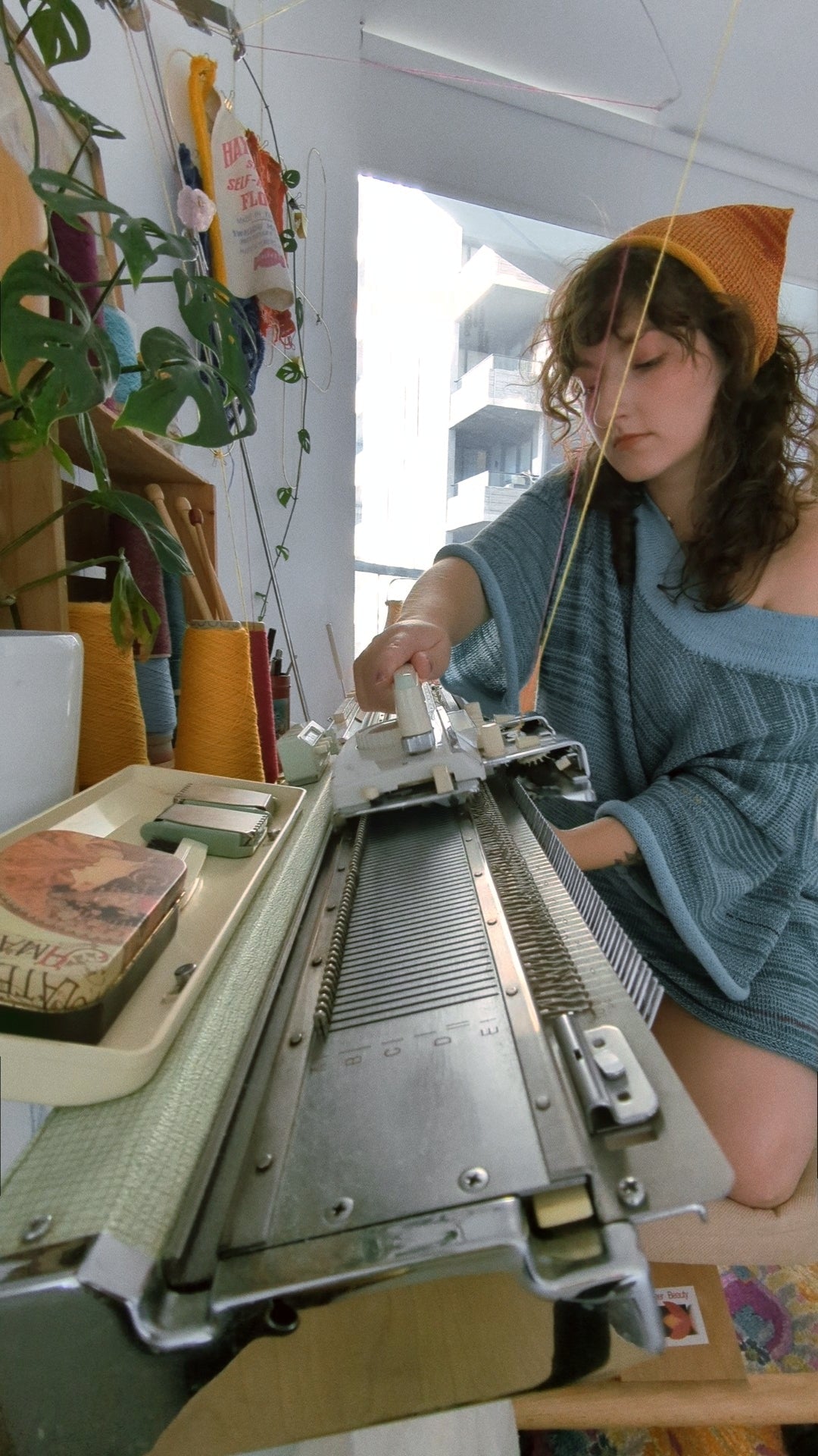 Each garment is carefully crafted in our Naarm/Melbourne studio using vintage domestic knitting machines and hand knit/crochet techniques.